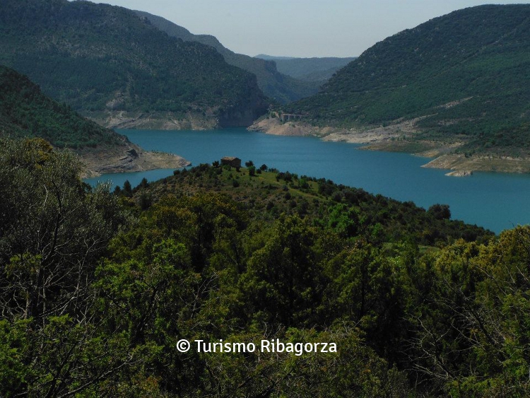 Ermita de San Marcos con el embalse de Canelles al fondo