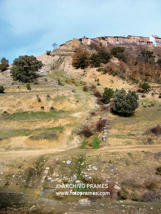 Barranco d'Escarans con el cerro de Montgai al fondo, tras él se sitúa el despoblado de Montgai