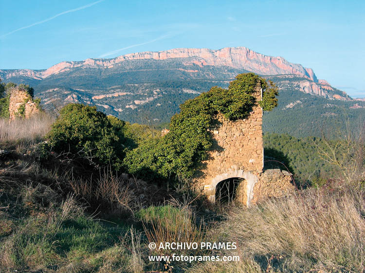 Casa de Fet con el Montsec al fondo